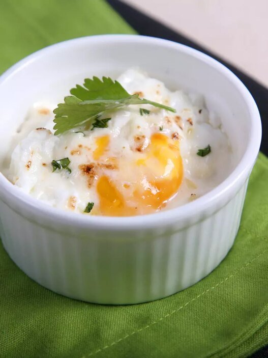 Once the butternut is cooked, remove it from the oven and remove the flesh using a spoon. In a salad bowl, mix the flesh with the bacon, add cream, pepper and nutmeg. Stir well.