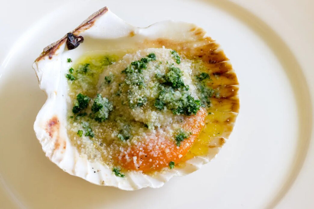Then, place a nice spoonful of herb butter (depending on your level of generosity) on each nut, without cutting the nerve that connects the muscle to the shell, they must remain united. All that remains is to cook them. Chef Piège, who loves them “almost raw and hot at the same time”recommends placing them quickly under the oven grill, between 1 min 30 and 2 min, to obtain the perfect texture.