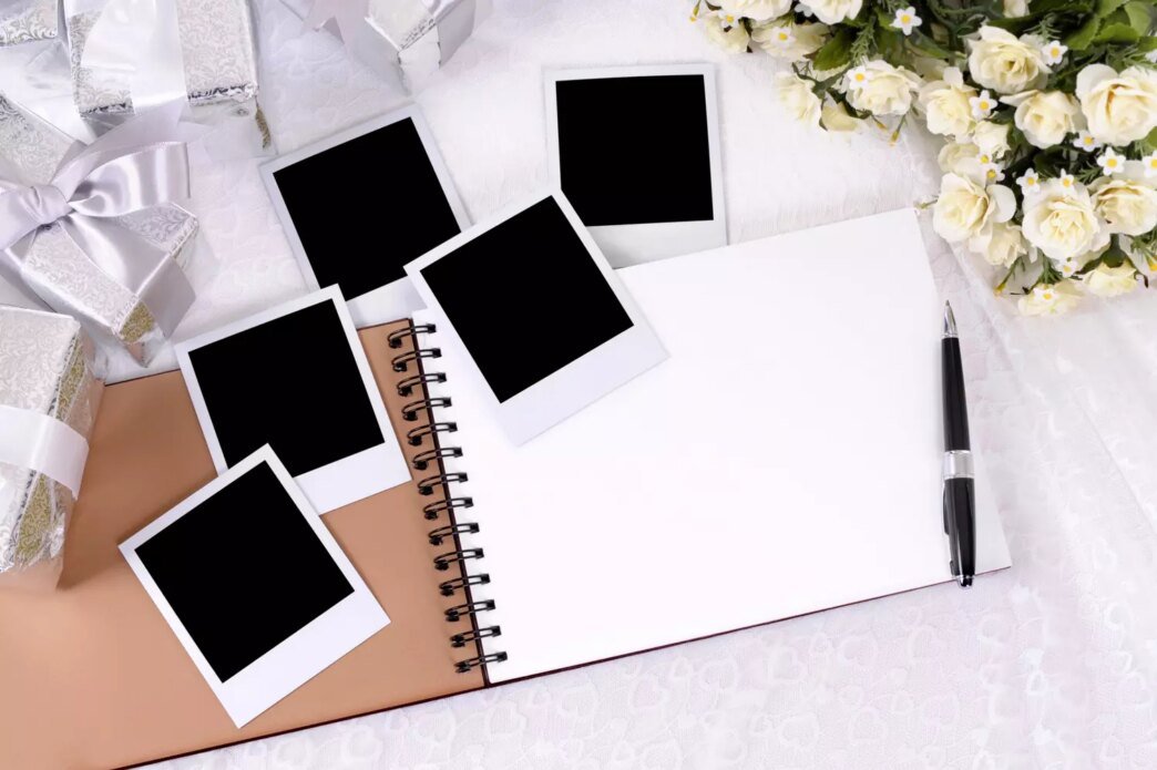 Finally, it is not obligatory that your guestbook be in book form. You can ask your guests to write you a note using an old typewriter. Choose paper on a roll. You can then roll it up like parchment. Otherwise, invest in a Polaroid. Place a blackboard with chalk next to it, on which guests will write their wishes, take a photo of themselves next to it and stick it in your guestbook. You can also take an empty frame and ask your guests to write a little note which they will then slip inside.